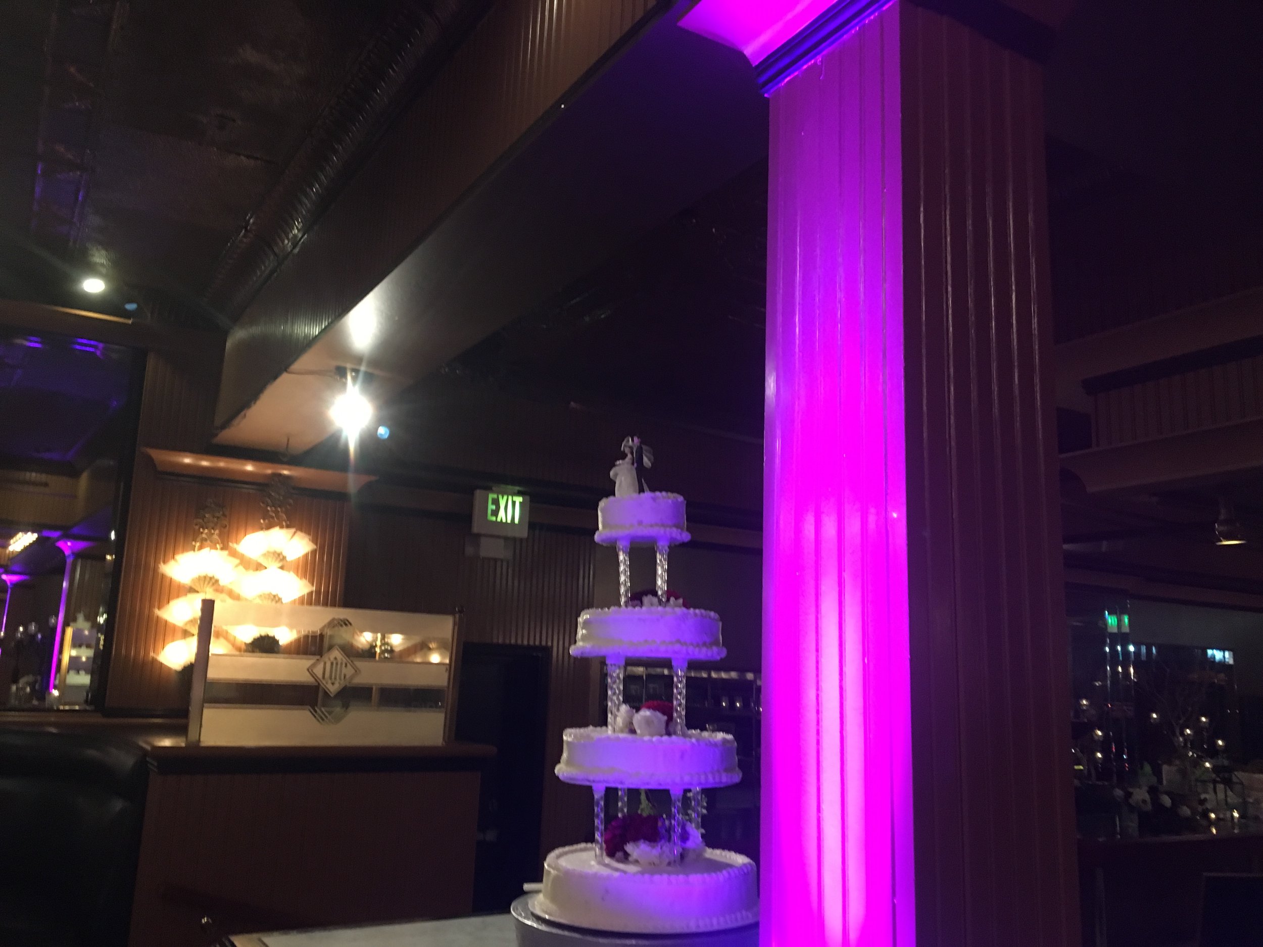 36+ battery-powered uplights owned in-house, offering greater placement flexibility and requiring less time for setup and tear-down.